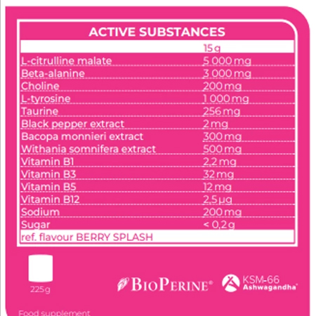 Ajánlott adagolás: Keverjen össze 1 adag 15 g (1/2 kanál) terméket 250 ml vízzel. fogyassza kb.30 perccel fizikai aktivitás előtt. Edzés során a termék szedése mellé szénhidrát és fokozott folyadékbevitellel kell biztosítani. A maximális napi adag 15 g. Ne lépje túl az ajánlott adagot.